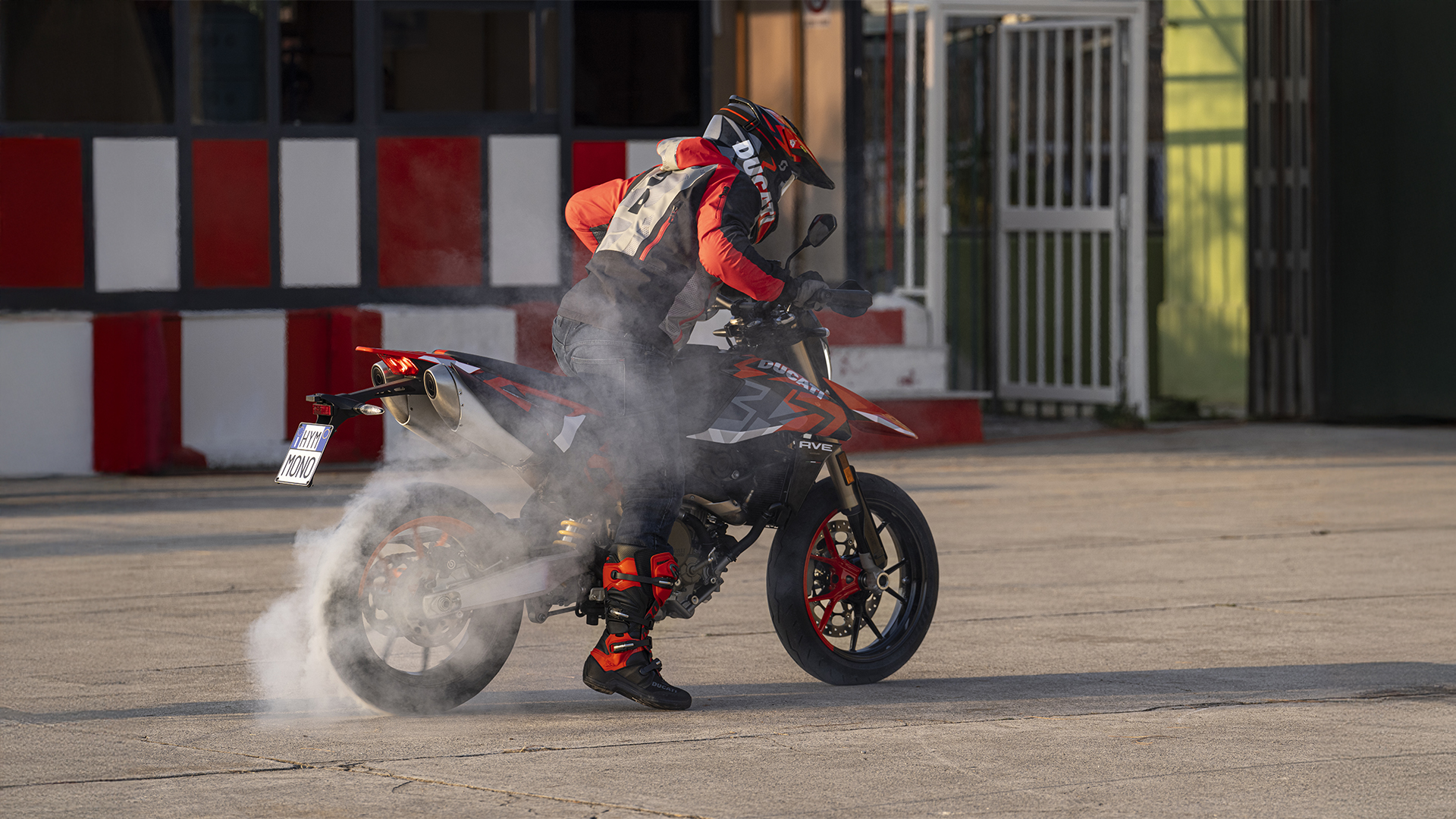 Climb aboard and let fun take charge. The new Hypermotard 698 Mono is the first single-cylinder road-going Supermotard by Ducati, born with just one aim – to transmit excitement, dominating the scene. Simple, lightweight, and agile, it is a true “fun-bike” with racing DNA.